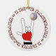 I Love Sign BASEBALL ORNAMENT ASL (AMERICAN SIGN LANGUAGE) SIGN FOR "I LOVE YOU" BASEBALL ON TOP OF PINKIE FINGER, HAND HOLDING HEART