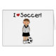 A soccer player with a soccer ball and kid style text that reads "I (heart) soccer!" on soccer T-shirts, soccer mugs, cards, tote bags, and more!