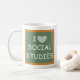 This product displays a picture of a chalkboard with "I [heart] SOCIAL STUDIES" in white font. This product is a great gift for social studies teachers or enthusiasts.