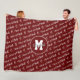 This softball themed fleece blanket for girls features the text, "I love softball" in a casual handwritten-style font along with heart shapes in white patterned diagonally on a dark red background - personalise with her name and monogram or varsity letter on large circle pendant - background, circle pendant, and personalised text colour can be changed to ANY colour that contrasts with the white text pattern - katz_d_zynes