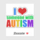 A beautiful autism awareness sticker in pretty rainbow colours for friends and family of someone who is autistic. I Love Someone with Autism. A cute gift for an autism mum, dad, grandma, or grandpa.