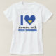 Show support with this pretty blue and yellow awareness heart and I love someone with Down Syndrome message on a tee shirt for a walk event.