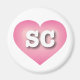 This magnet features a pink heart with a white-washed center containing the bold, white, upper case letters SC, the official abbreviation for South Carolina, the palmetto state.