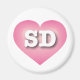 This magnet features a cool pink heart with a white-washed center containing the bold, white, upper case letters SD, the official abbreviation for South Dakota, the Mount Rushmore state.