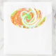Orange: The dominant background colour, providing a warm and energetic backdrop. The orange varies in shades, creating a swirling, dynamic effect that captures attention.