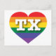 This postcard features a heart with a rainbow pride design and the bold, white, capital letters TX, the official abbreviation for the lone star state. The reverse side of the postcard is blank, awaiting your personalised text or handwritten sentiments. Show your true colours, support marriage equality, and celebrate gay pride.