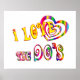 Share your love for the 1990s with this fun design with colourful hearts and the words - I Love the 90's.