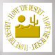 Dunes and a cactus in a raised 3-D effect surrounded by the words "I love the desert"