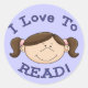 These stickers feature a cute girl in pig tails image and the words, 'I love to read'. The background showing is purple but it is changeable with the customise button. These would work perfect for teachers or others working with children as reward stickers or for motivational incentives!