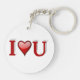 Valentine's day key chain with I heart U in 3D red text. Round and square key chains available in several styles. Great for family and friends or that special someone.