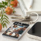 Modern black and white "I love us" brush script photo collage keychain with personalised names.