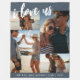 Modern blue and white "I love us" brush script photo collage blanket with personalised name and year.