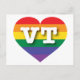 This postcard features a rainbow pride heart overlaid by the bold, white, capital letters VT, the official abbreviation for Vermont, the green mountain state. Show your true colours, support marriage equality, and celebrate gay pride.