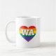 This mug features a rainbow pride heart overlaid by the bold, white, capital letters WA, the official abbreviation for Washington, the evergreen state. Show your true colours, support marriage equality, and celebrate gay pride.