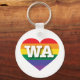 This key chain features a rainbow pride heart overlaid by the bold, white, capital letters WA, the official abbreviation for Washington, the evergreen state. Show your true colours, support marriage equality, and celebrate gay pride.