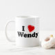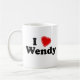 I love Wendy! Is your name Wendy? Do you have a husband, boyfriend, male family member or male friend who you know loves you? Or do you have a wife, girlfriend, female family member or female friend named Wendy whom you love deeply? If so, this "I Love" mug is exactly the gift that you're looking for! The design features the letter "I" in black lettering with a red heart on the top and "Wendy" in black lettering on the bottom.