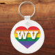 This keychain features a rainbow pride heart overlaid by the bold, white, capital letters WV, the official abbreviation for West Virginia, the mountain state. Show your true colours, support marriage equality, and celebrate gay pride.