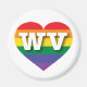 This magnet features a rainbow pride heart overlaid by the bold, white, capital letters WV, the official abbreviation for West Virginia, the mountain state. Show your true colours, support marriage equality, and celebrate gay pride.