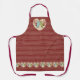 This apron features HoMeArts' original design of Robin's egg blue and avocado green lovebirds surrounded by branches & red holly berries in a lemon yellow heart stand out from a background of dark red and cream coloured stripes.