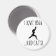 Great inspirational typography magnet with woman silhouette doing yoga and words "I love yoga... and cats" on it.