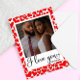 I love you becouse Valentines Day card. Cute romantic design featuring trendy script, one square photo and patern with res hearts. The text can easily be personalised.
