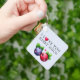 A charming and playful design featuring a cute blueberry and strawberry with the message "I Love You Berry Much." Perfect for adding a sweet touch to your keys or gifting to someone special. This adorable keychain is a fun and heartwarming way to show your love.
