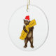 I Love You California Bear with Santa Hat Ceramic Ornament