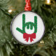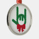 Christmas wreath shaped into an "I Love You" hand with a red bow at the bottom against a white background.