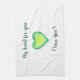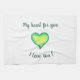 I Love You Cute Green and Blue Heart Birthday Tea Towel