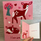 Send out some sweet Valentine's Day greetings with this customisable card. The pretty red, white and pink graphics depict cute deer with white heart-shaped spots. The message on the front and on the inside of this card can be customised with your own greeting.