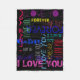 Repeating ""I love You"" & ""forever " with amazing and various lettering. Design on fleece blanket with dark background. You can easily change text (font, colour, size and position) and background colour by clicking the customise button.