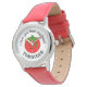 funny round juicy red tomato with green leaves, dots for eyes and a big happy smile. Curved above and below the tomato in black text are the words "I love your from my head tomatoes."