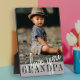 Modern photo plaque featuring single photo of a child and ''I love you Grandpa'' in modern lettering on a grey background. Beautiful gift for grandfathers.