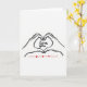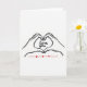 This card shows two hands outlined in black with a soft gray shading, meeting in the middle to form a heart shape on a white background. The hands look gentle and steady, like they’re carefully holding that heart together. Inside the heart shape, the words “love you” appear in a simple cursive handwriting style, placed right at the center. Under the hands, there’s a thin red broken line that stretches across, with three small solid red hearts sitting along it. That touch of red draws your eye and adds a warm, romantic feeling ❤️. The overall design is quiet and direct, which makes the message feel honest and easy to give. It’s a meaningful card for a partner, close friend, or anyone you want to remind that you care 🥰. Hope it helps you share Valentine’s Day sentiments.