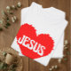 Wear a pixel art faith shirt of a heart that spells "I Love Jesus." Combine your faith with a unique style designed to express your love for Jesus in a fresh and original way. Customise your size.