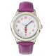 You can admire my Valentine's Day drawing and romantic drawing that I call, "I Love You," of a red and pink striped heart, added onto this kids stainless steel purple leather watch.
