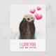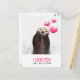 Valentines / Love postcard which says: "I love you like no otter" with an image of a cute otter with hearts floating upward. The hearts are pink and chubby-looking with a shiny reflection.This otter is quite adorable with his paws resting under his furry little chin. His fur looks wet from hanging out in the water.