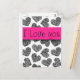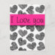 A modern and artistic pattern featuring hand-drawn, scribble-style hearts in a classic black-and-white palette and 'I Love You' text written in fun script on a pink background. Cute, girly and lovely heart designperfect for Valentine's Day or anniversary for your loved one.