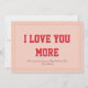 Share a timeless message of love with this “I Love You More” Valentine featuring bold typography on the front and a charming floral patterned back for added visual interest. Designed as a flat Valentine’s greeting, this modern yet romantic style blends clean layout with playful color and botanical detail, making it perfect for partners, spouses, or anyone who appreciates thoughtful design.
