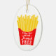 You love french fries, but you love your person even more! Express your love with this funny and sweet ornament designed by Enchantfancy Design Company. The I Love You More Than French Fries Ceramic Ornament features a red fast-food style fry container filled with yellow french fries. Personalise with your choice of year on the backside.