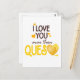 Strong words for any Texan here because our love for queso is legendary! Brown and yellow design with slightly distressed lettering. O in queso is a heart-shaped tortilla chip dripping with cheese. Matching products available.