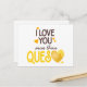 Strong words for any Texan here because our love for queso is legendary! Brown and yellow design with slightly distressed lettering. O in queso is a heart-shaped tortilla chip dripping with cheese. Matching products available.