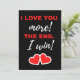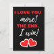 I Love You More! The End. I Win! design. This is a short funny quote which is great as a Valentine's Day gift for girlfriend, boyfriend, him, her, couples, husband or wife. Also suitable as a general Love gift for Anniversary, Birthday or Christmas