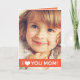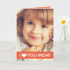 Feature your any photo you'd like to present your mum with simple and modern card. Bright tangerine tango orange, written I heart you mum! The inside brings the same orange and chevron zig zag pattern. Available in other colours.