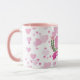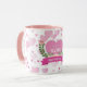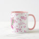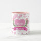Featuring the words "I Love You Mum," printed on a large soft pink heart and "Happy Mother's day" printed on a hot pink banner, on pink little hearts pattern background, this Mug would make a unique and special gift for any Mother.
