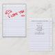 i love you : notebook paper business card