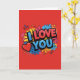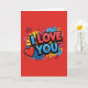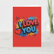 A bright and fun I Love You Card, In a Pop Art style design. Suitable for anyone, for any occasion.