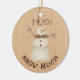 Primitive snowman says I (heart) love you so much! Back of ornament has a primitive country heart. Such a sweet ornament to give a loved one who loves the country & primitive look!