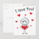 Express your heartfelt affection with this adorable 'I Love You!' stick figure design. Featuring a charming doodle character holding a big red heart, surrounded by smaller hearts, this simple message is perfect for conveying love to that special someone. Its sweet, hand-drawn style adds a touch of warmth, making it ideal for Valentine's Day, anniversaries, or just to brighten someone's day with a loving thought.