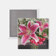 Still photography of lovely pink stargazers lilies and a I Love you sweetheart saying adorn this magnet.